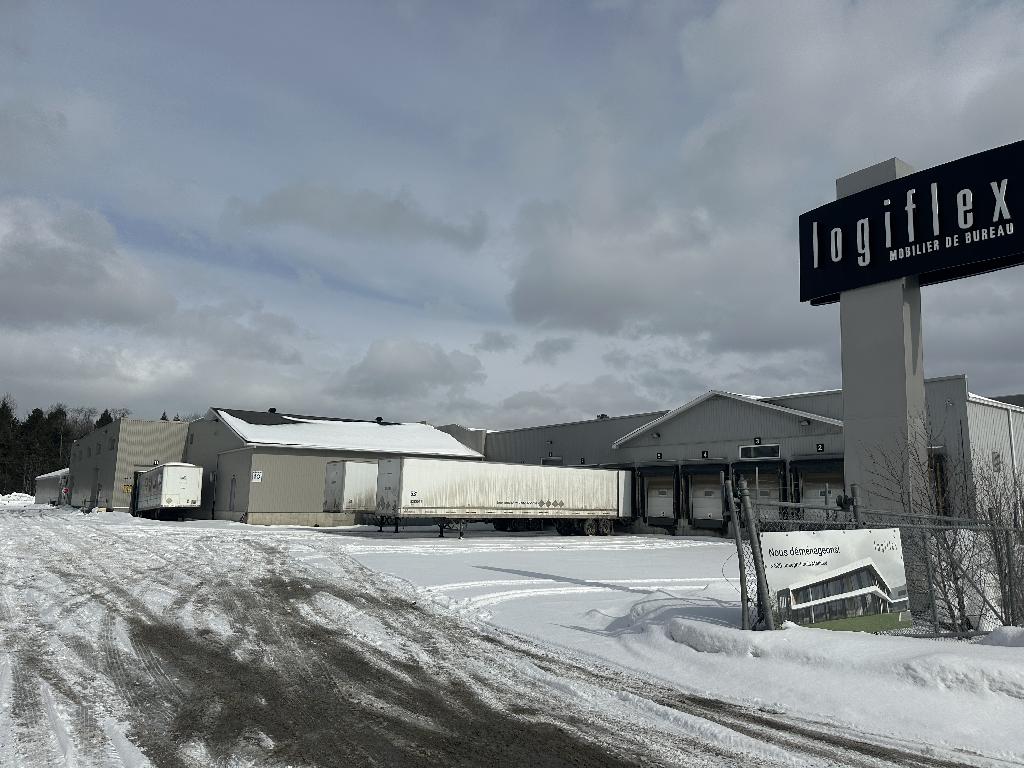 1- Entrepôt à louer d'environ 23,000 pc avec des hauteurs variant de 12 à 16 pieds avec partie bureau en mezzanine. ! débarcadère et 3 portes de garages.